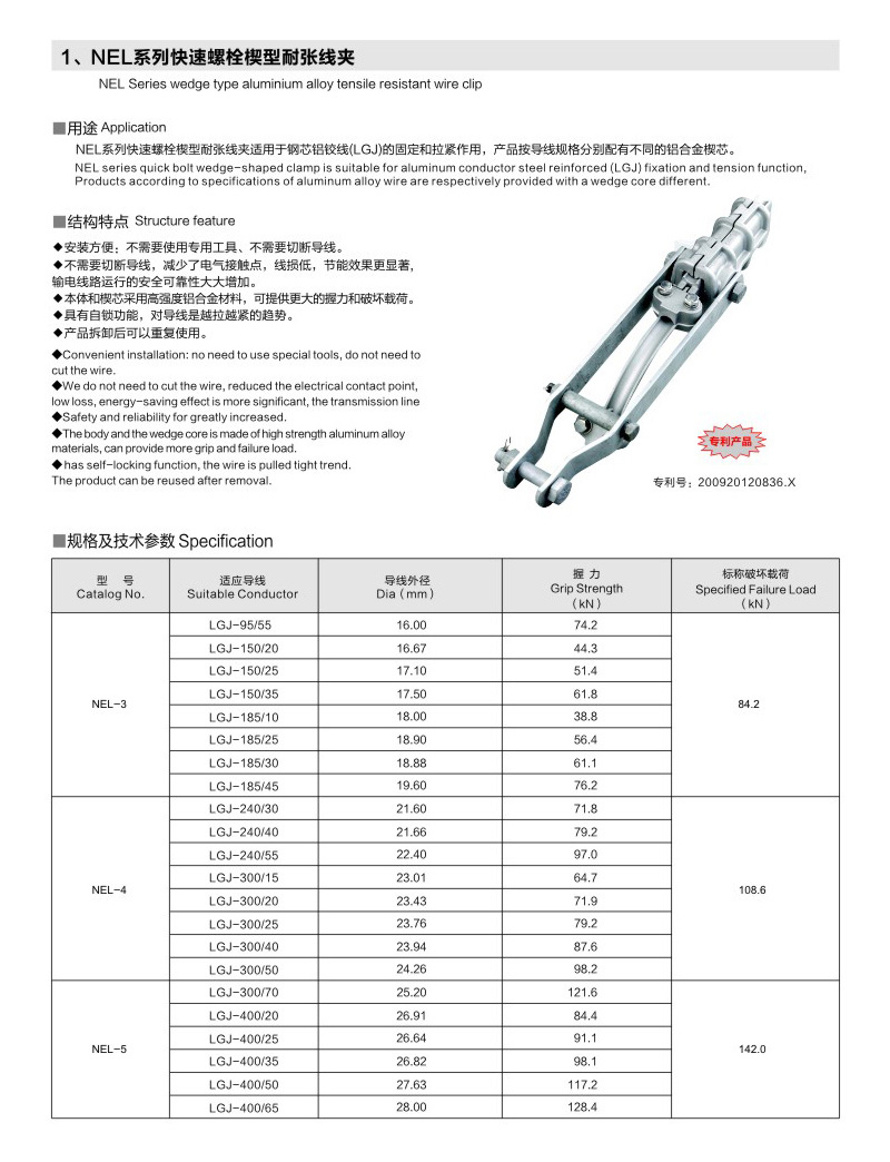 NEL系列快速螺栓楔型耐張線夾